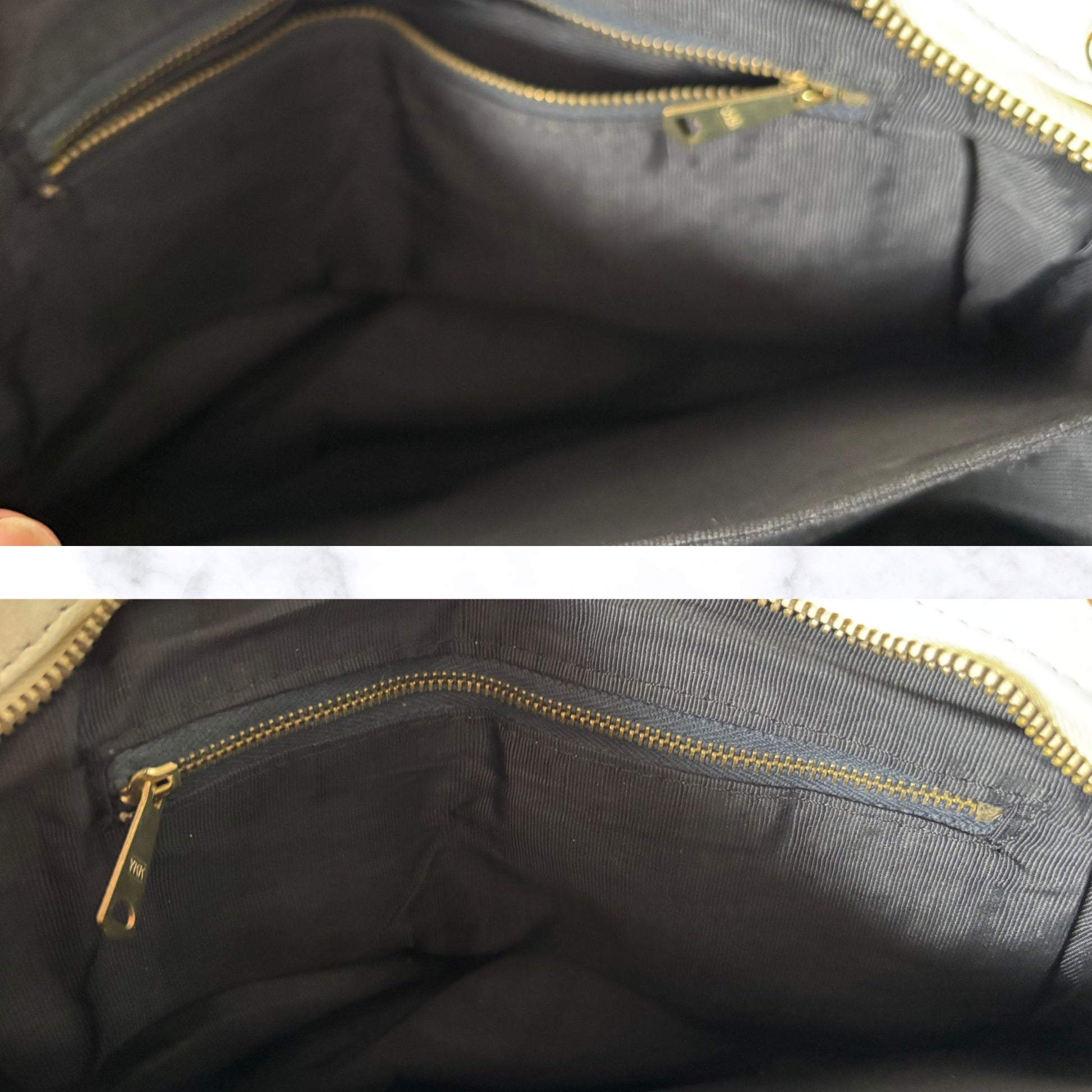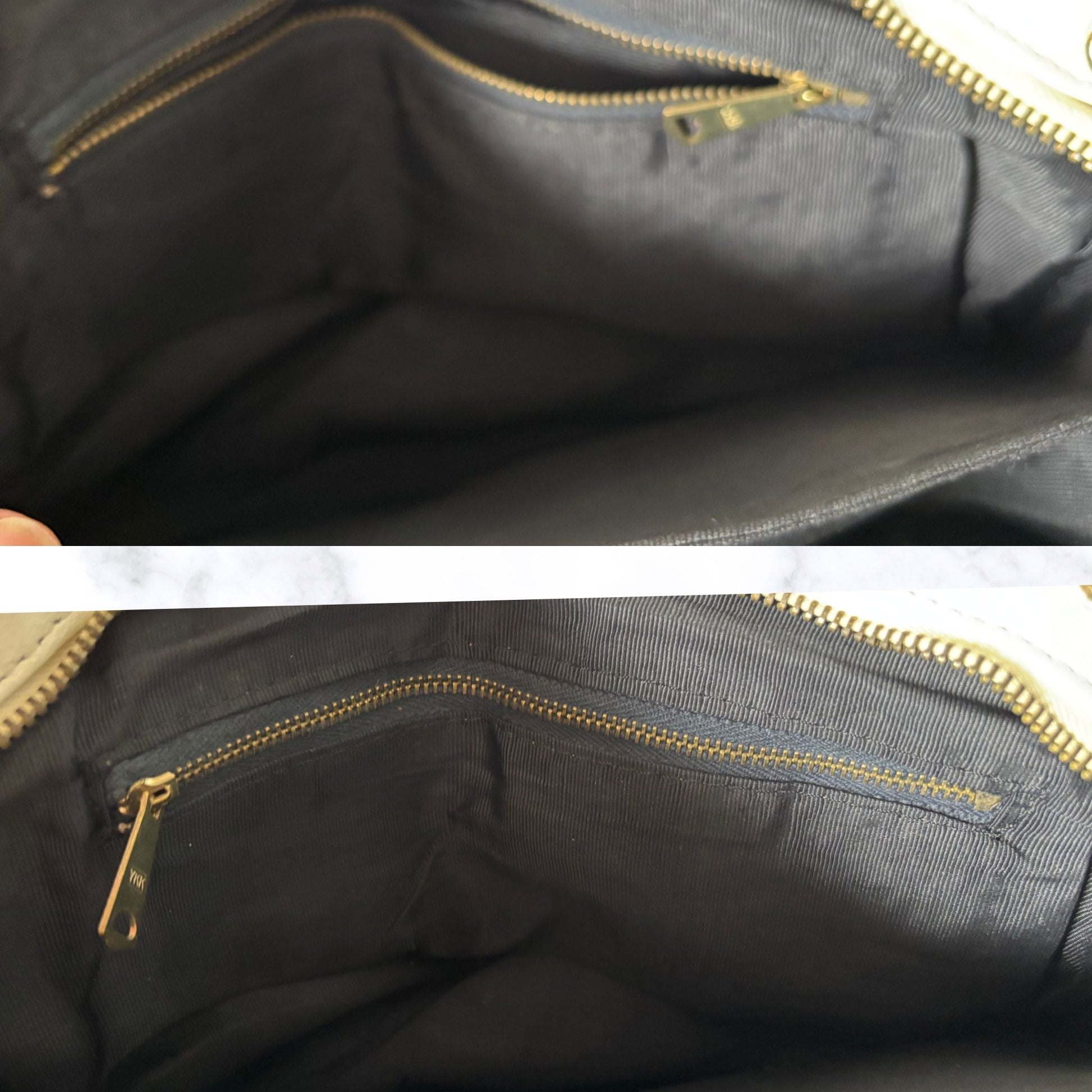 - Bag is not marked as leather inside the bag but I am sure from the feel and patina and the sample on the zip pull that it is