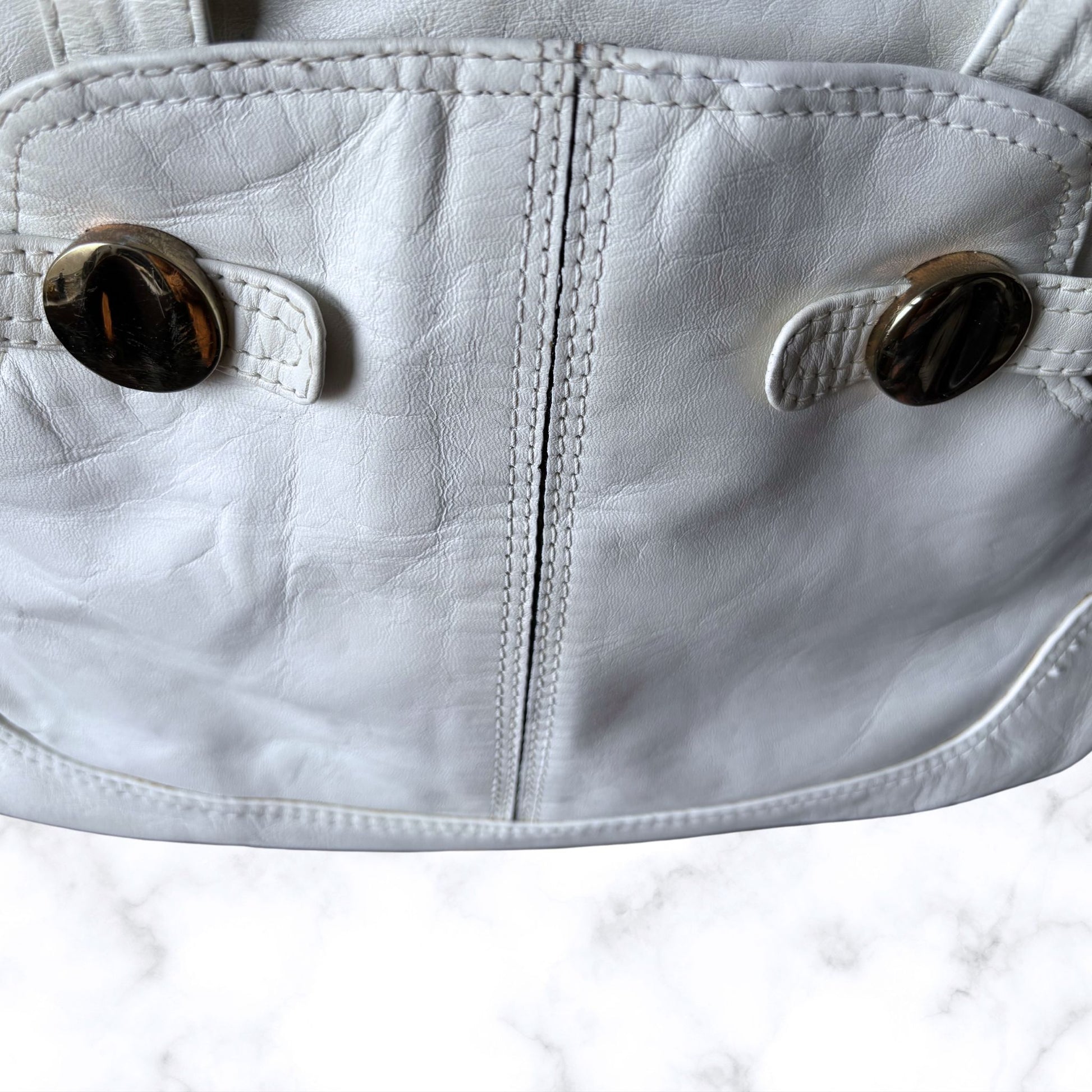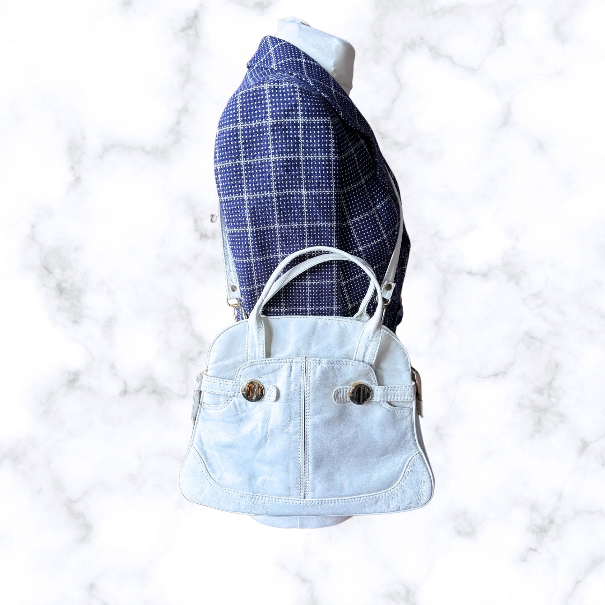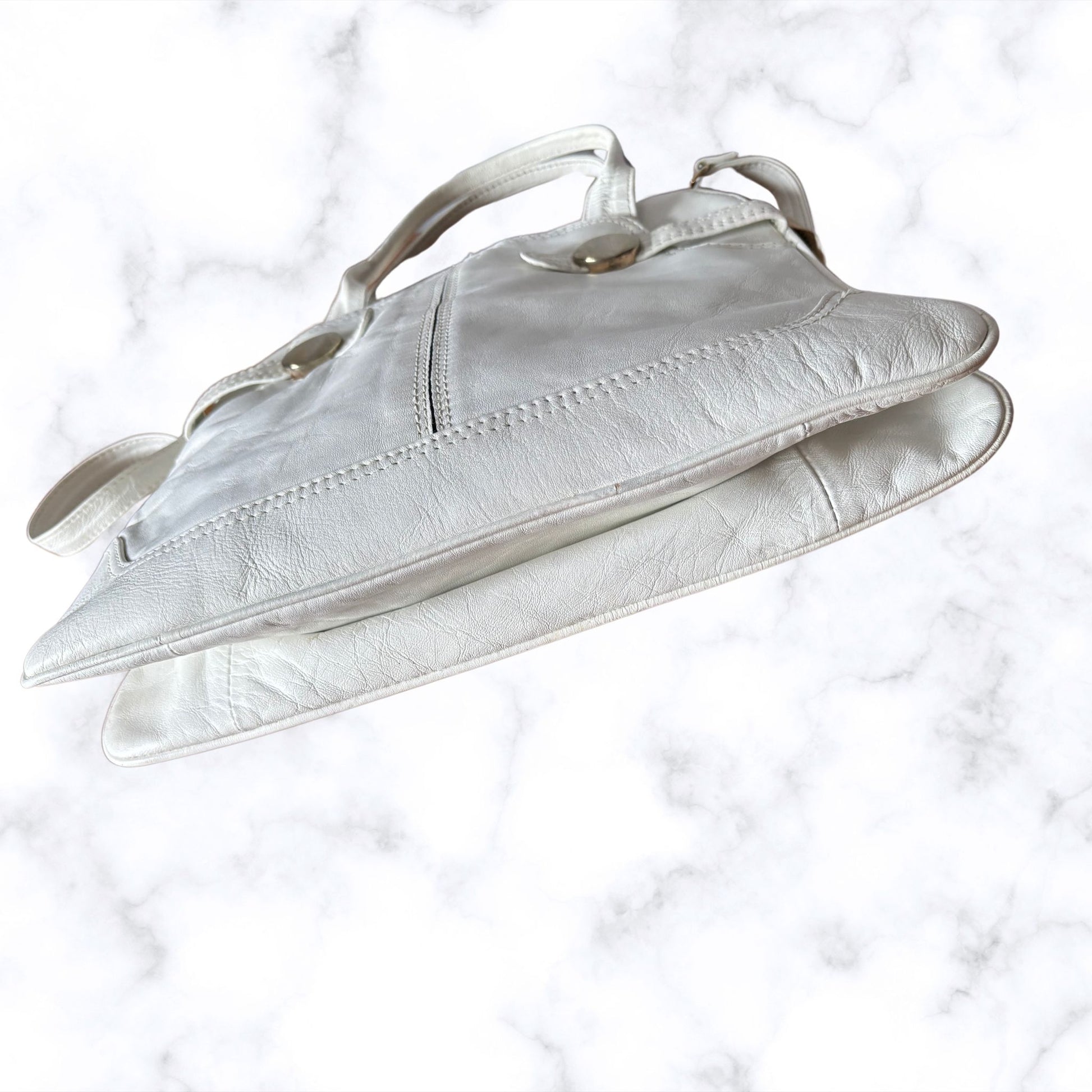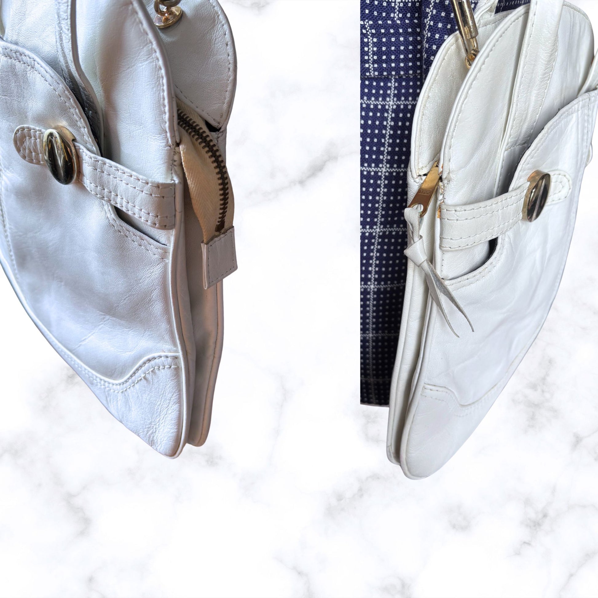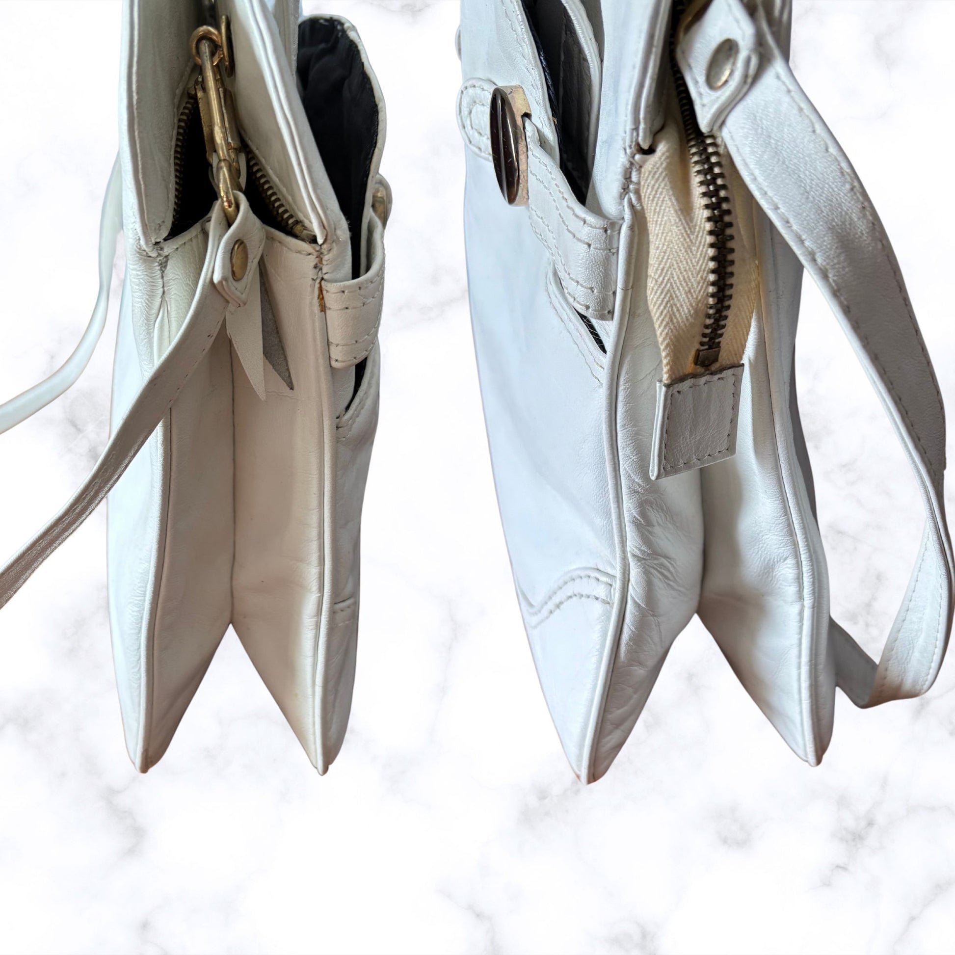White Leather 70s Vintage Shoulder and top handle Bag by Sandix. Stylish and Secure